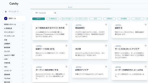 リリース3か月でユーザー数14,000人を超えた、同社で開発・運営している、GPT-3を活用したライティングアシスタントサービス「Catchy」を同時に活用することで、Webサイト制作で発生するライティング業務をサポートします。Catchyの生成ツールは、記事作成やキャッチコピーなど140を超えるシチュエーションの文章制作が可能です。