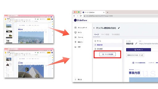 「Slideflow(スライドフロー)」は、プログラミングなどの専門知識がなくても、PowerPointやGoogleスライドをアップロードすることで最短1分で簡単にWebサイトを制作することができるサービスです。多くの方が利用するPowerPointやGoogleスライドをWebサイトの管理画面として使用できるため、チーム全体でのサイト制作や管理を可能としました。