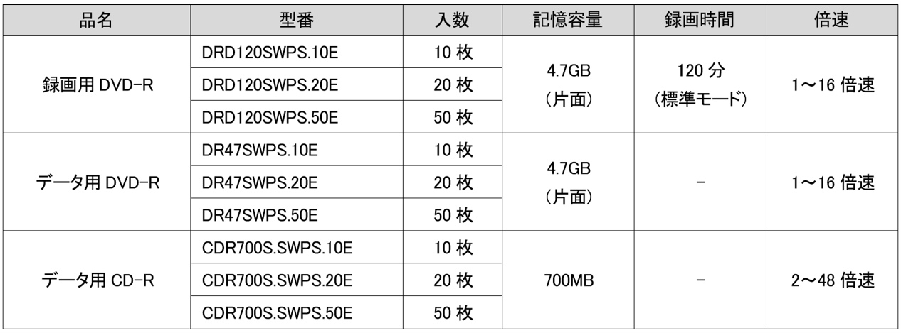 エコパッケージ録画用DVD-R、データ用DVD-R、データ用CD-R