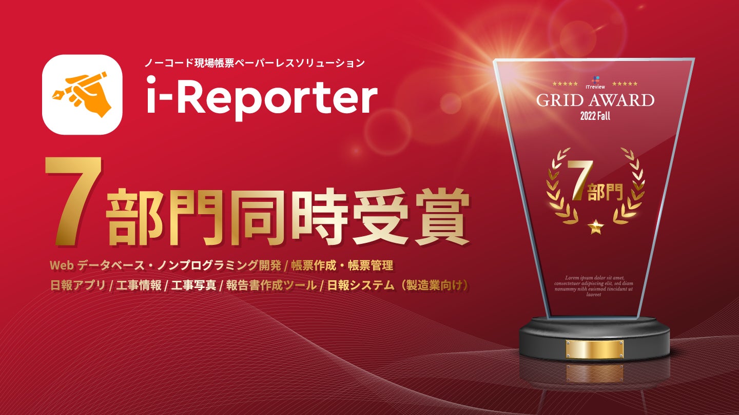 i-Reporterが「ITreview Grid Award 2022 Fall」の7部門で「Leader」を受賞致しました。