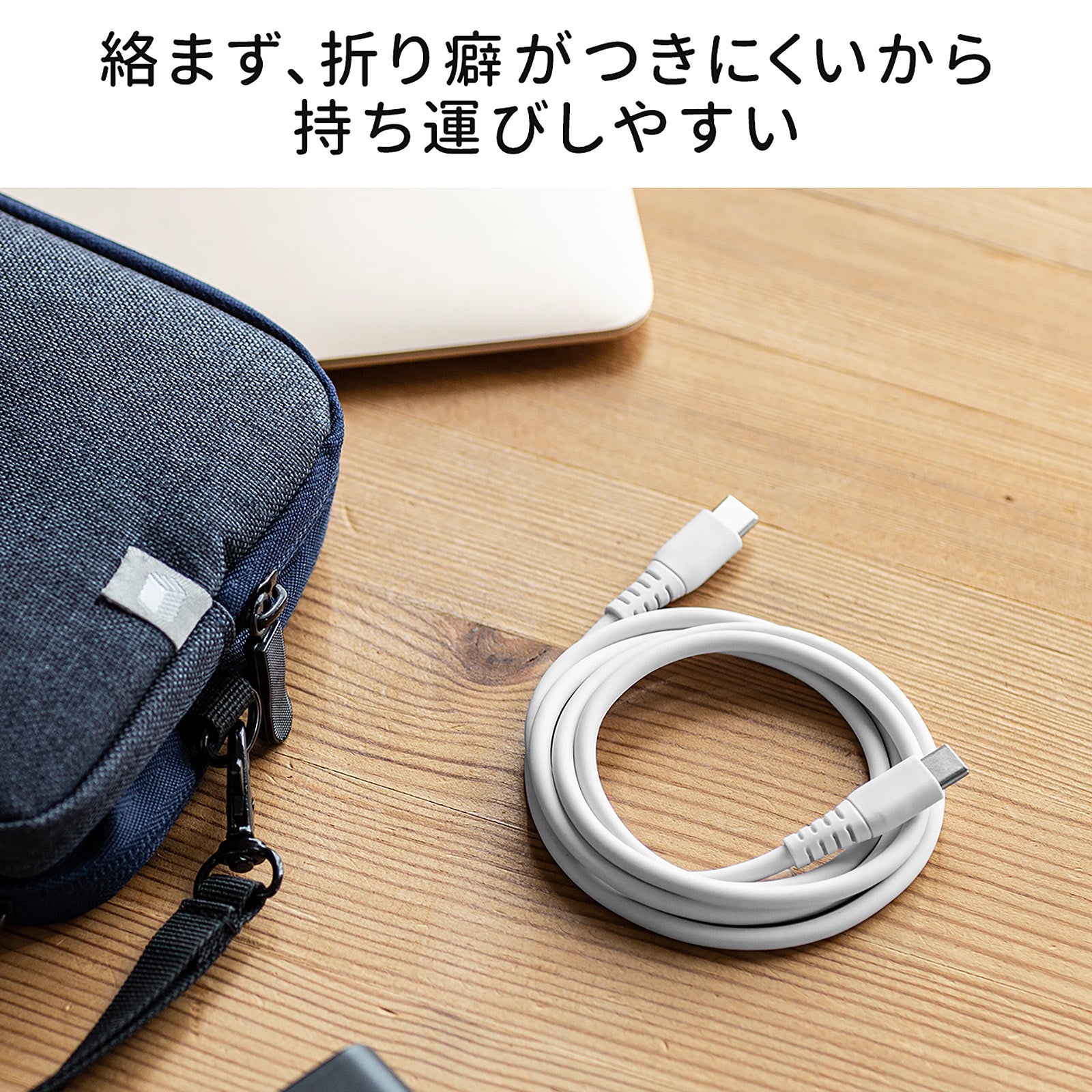 束ねても絡みにくく、折り癖がつきにくいため、持ち運びに便利です。