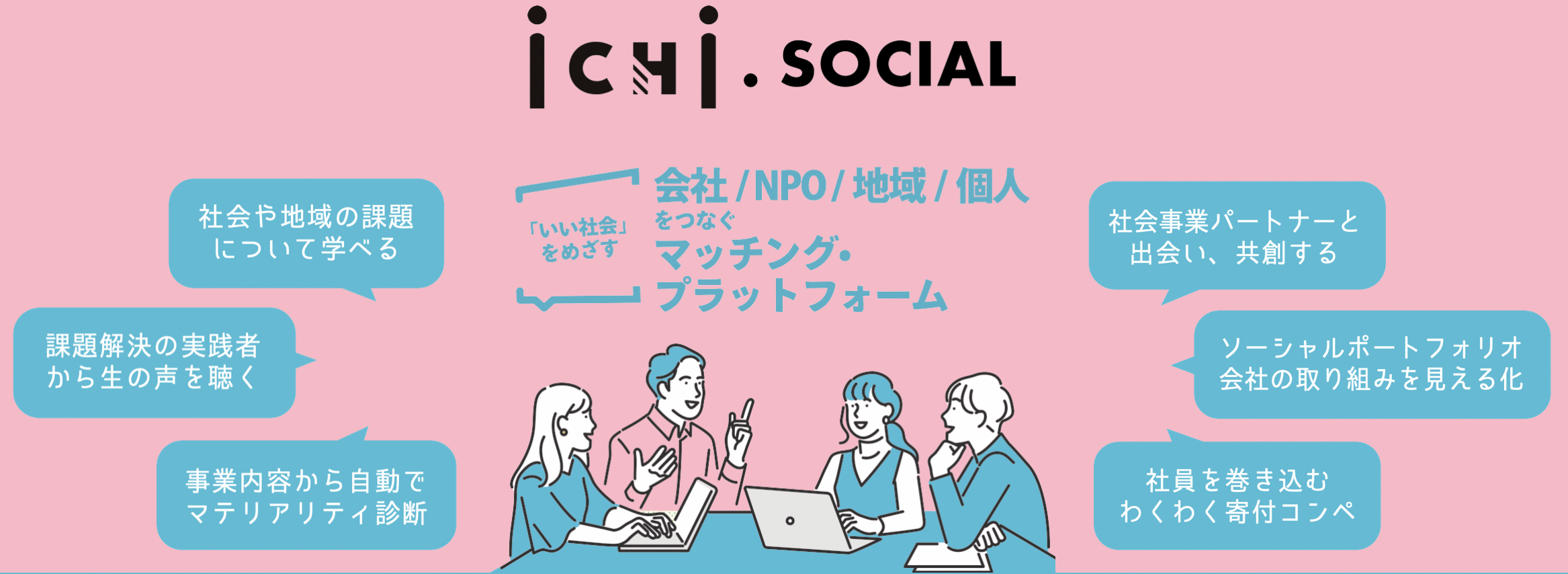 ICHI COMMONS 株式会社(読み : イチ コモンズ、代表取締役:伏見崇宏)は、セクターを越えたひと・お金・もの・情報の好循環を促し、社会課題の解決をめざすマッチングプラットフォーム『ICHI. SOCIAL』を提供しています。【リンク:https://ichi.social/】