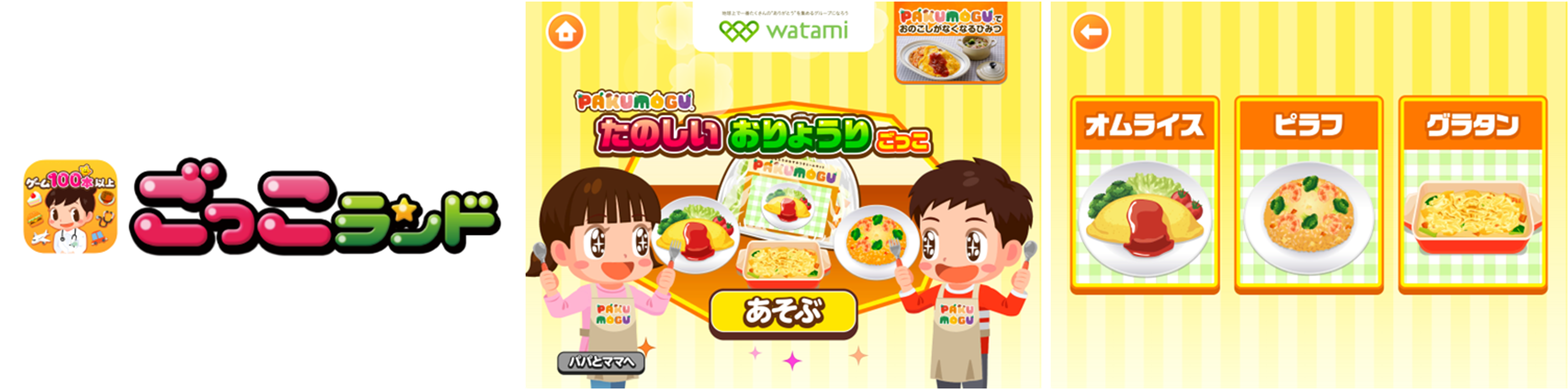 本ゲームを協賛するワタミ株式会社(以下「ワタミ」)は、子どもたちが「おいしい!」と完食してくれることを目指し、子ども向けのミールキット「PAKU MOGU」を提供しています。育ち盛りの子どもたちの食生活をサポートしたりご家庭の食事準備負担の軽減ができるミールキットをより身近に感じていただきたいという想いから、『ごっこランド』への出店が実現しました。