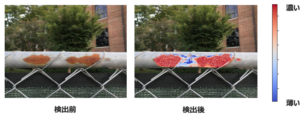 また、点検作業には目視による撮影写真のサビ品質確認や点検報告書の作成など、単純作業に多くの人手と時間を要しています。今回開発した技術を活用することで、サビの濃さ・腐食面積率の詳細まで自動で分析できるため、日常業務の効率化と分析精度向上が期待されます。