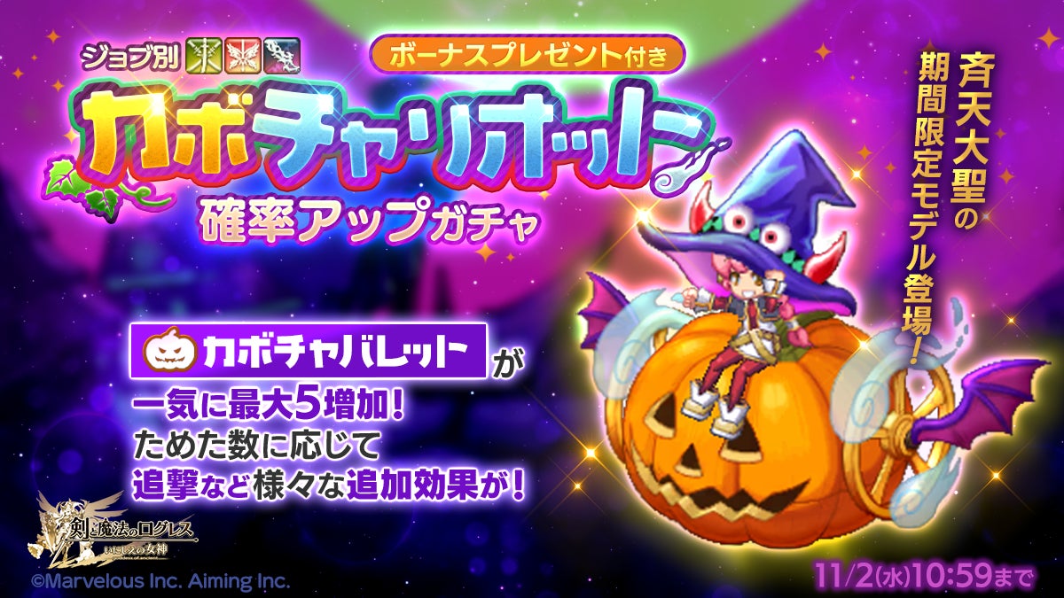 期間中、「ジョブ別 カボチャリオット確率アップガチャ」を販売します。