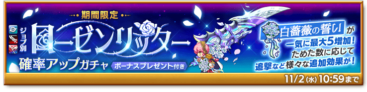 ■白薔薇の誓いで覚醒スキル効果UP!「ジョブ別 ローゼンリッター確率アップガチャ」販売!