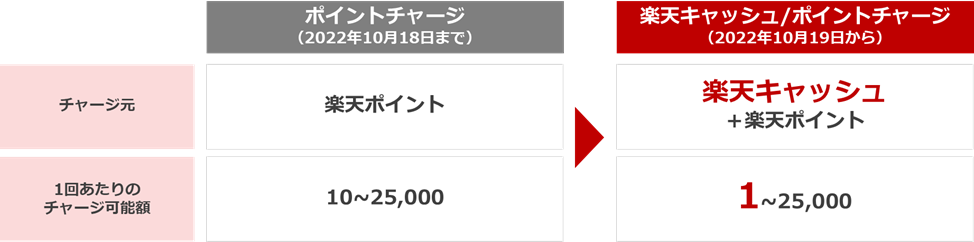 (注2)チャージ可能なポイントは、期間限定ポイント・提携サービス会社から交換されたポイントを除く「楽天ポイント」です。