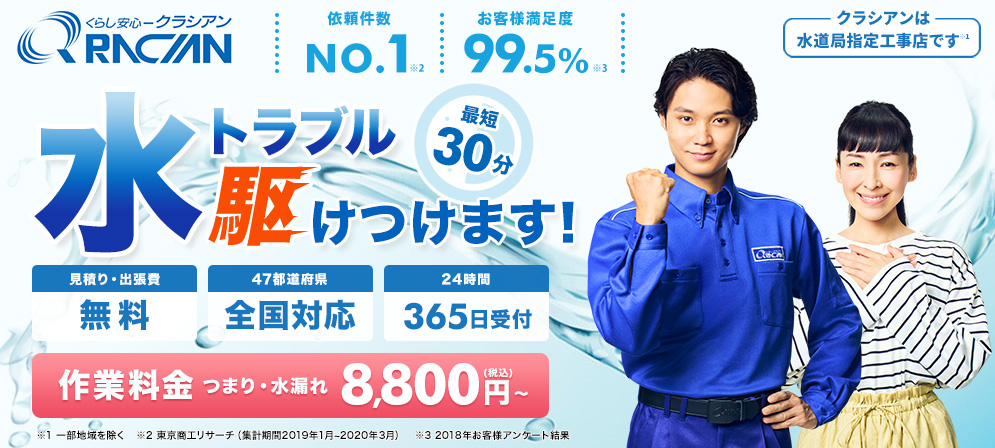 水道修理費用のぼったくりや高額請求のトラブルにメスを入れ、水道修理の費用を適正化しユーザーに安心して修理を依頼してもらいたいという共通の課題を解決するため、クラシアンと『水道修理のセーフリー』は業務提携をいたしました。