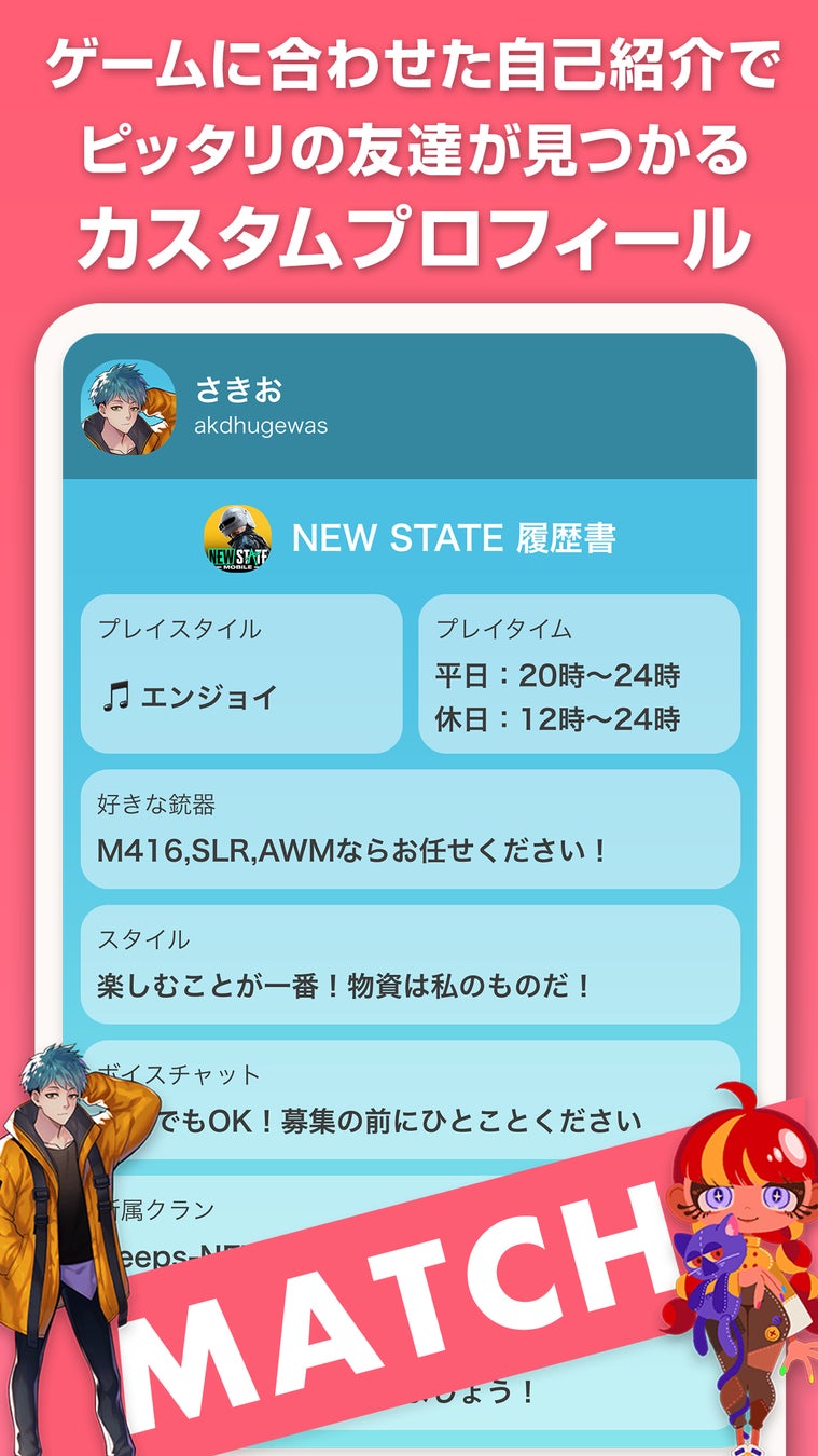 「FPSも好きだけど、RPG好きな人とも遊んでみたい!」そんなみなさんが、もっと幅広くゲーム仲間と繋がり遊べるように、一つのアカウントで複数のゲーム履歴書を作成可能です。