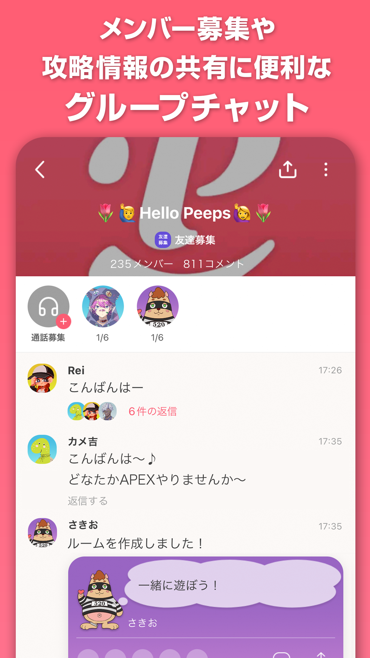 ▼グループで新しいゲーム友達とチャット、通話を楽しもう!