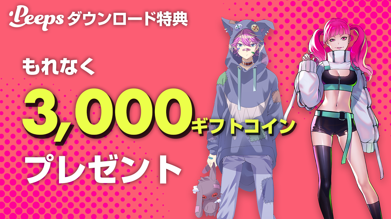 新規ダウンロードしていただいた全員に、Peepsでご利用可能な3,000円分のギフトコインをプレゼントいたします。