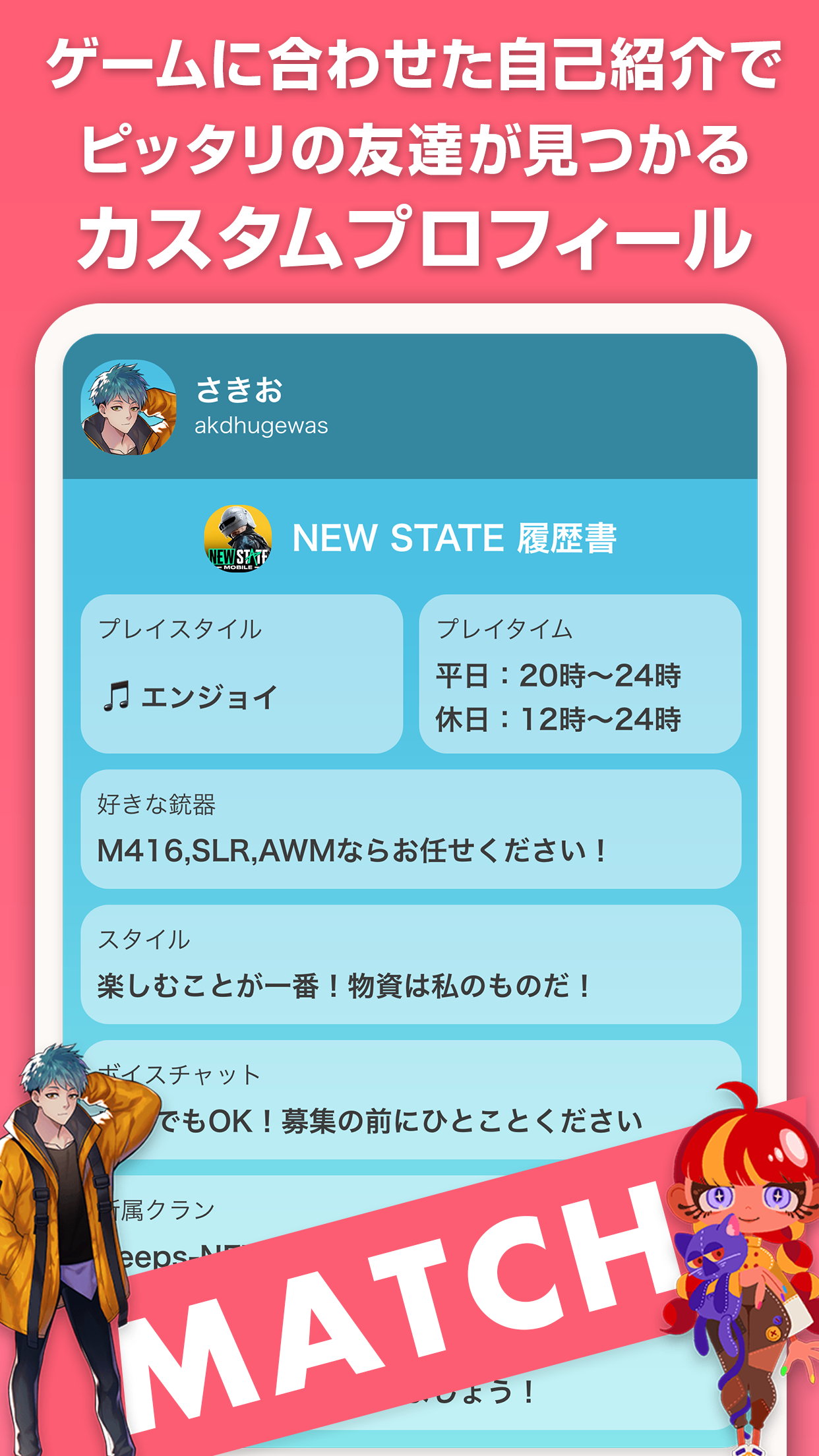 「FPSも好きだけど、RPG好きな人とも遊んでみたい!」そんなみなさんが、もっと幅広くゲーム仲間と繋がり遊べるように、一つのアカウントで複数のゲーム履歴書を作成可能です。