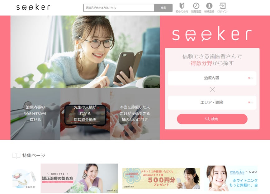 「seeker」(https://seeker-dental.com)は歯科医院ごとの得意な治療分野を収集しており、ユーザー(患者)が入力した症状に合った歯科医院が自動的にマッチングされ、厳選して歯科医院を選んで予約が出来るマッチングサイトおよびアプリです。