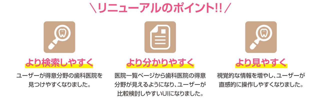 • ユーザー・歯科医院からのご要望をもとに大規模リニューアルを実施!