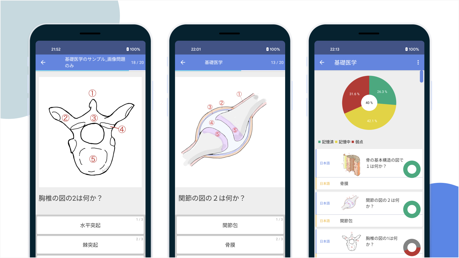 一例として、専門学校で看護師や理学療法士・作業療法士の国家資格取得に向けて活用されています。Monoxerを活用することで記憶する情報が体系的に整理され、無理せず必要な知識を憶えられる環境を整えることができます。