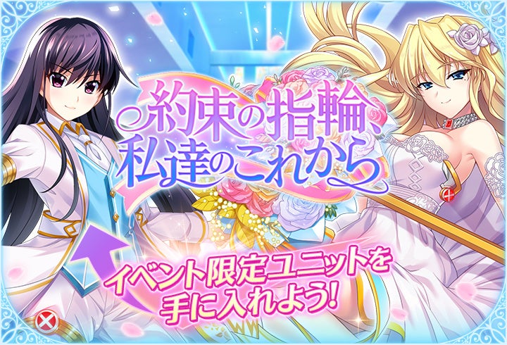 本イベントでは新ユニットとして、ブライダル衣装を纏った春寺由梨亜や榊由美子が登場! 下記のユニットをパーティに編成すると、バトルで獲得できる「金のハート」の獲得量がアップします。