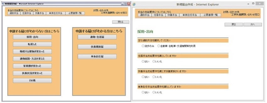 各職員が各種諸手当の申請や認定結果情報の照会を Webブラウザ上で行える機能を提供します。住居手当・扶養手当・通勤手当・単身赴任手当の認定4手当てに関する申請と認定結果の照会が可能です。