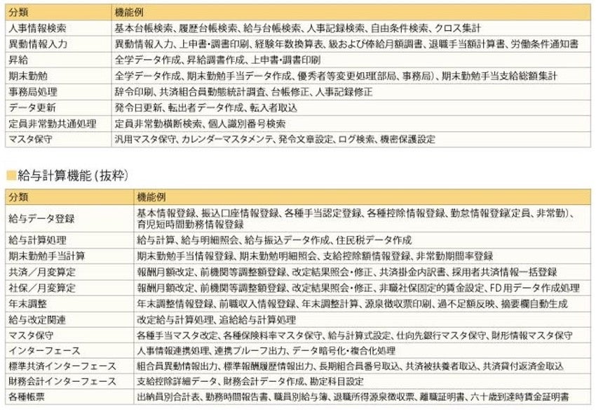 給与機能は、公的機関特有の給与体系に対応した各種手当情報と控除情報の管理機能、給与計算機能から構成されています。月例給与計算の手続きと並行して共済・社保の月変算定や共済組合事務システムへの連携処理をすることができ、給与担当者・共済担当者の業務効率化を実現します。