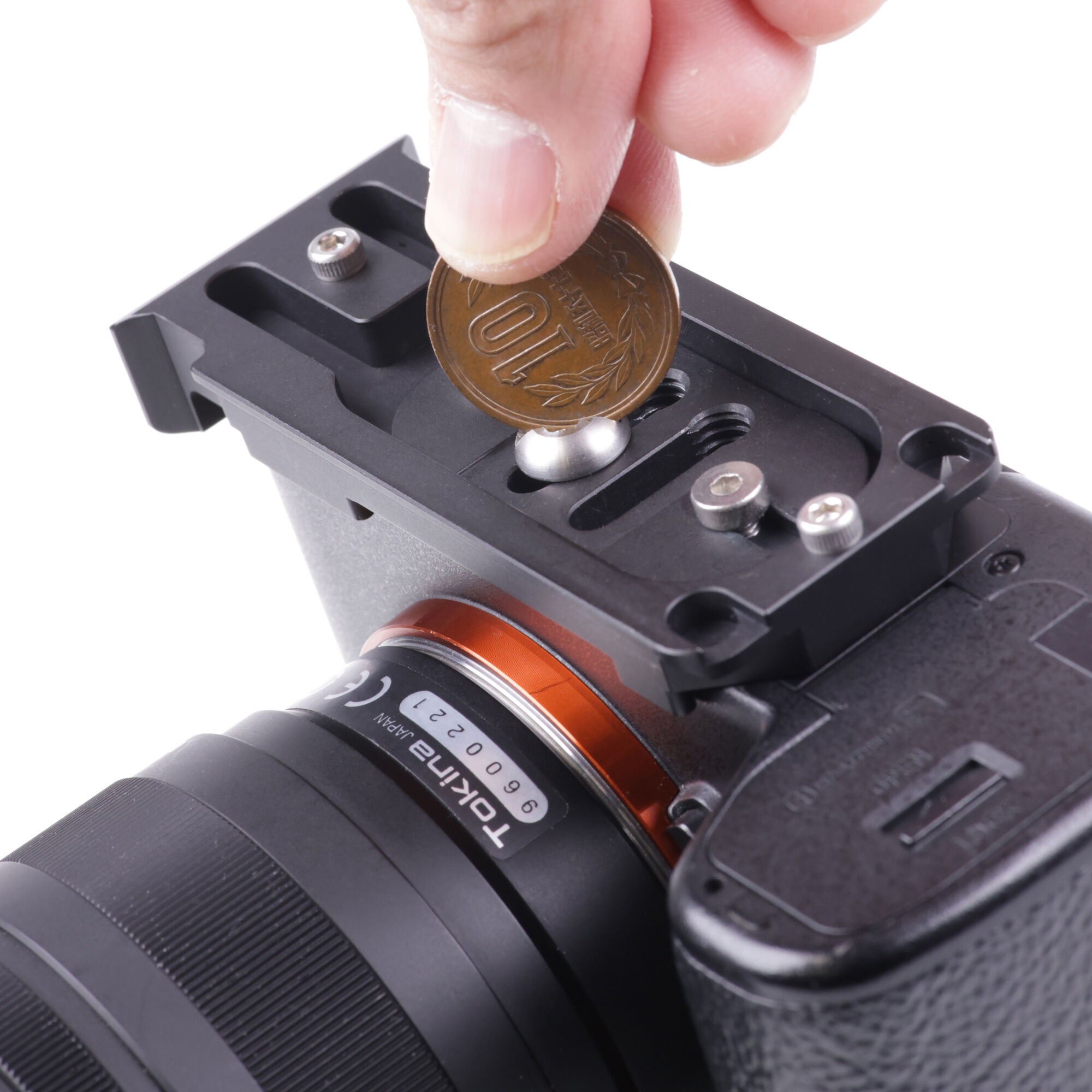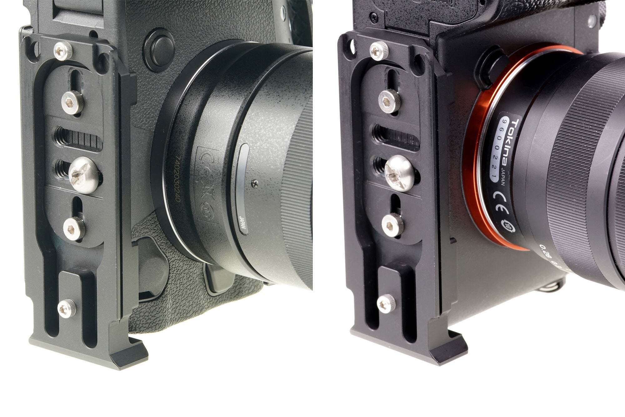 主要なフルサイズミラーレス機にフィットするように、 ネジ位置が前後左右に調整可能。