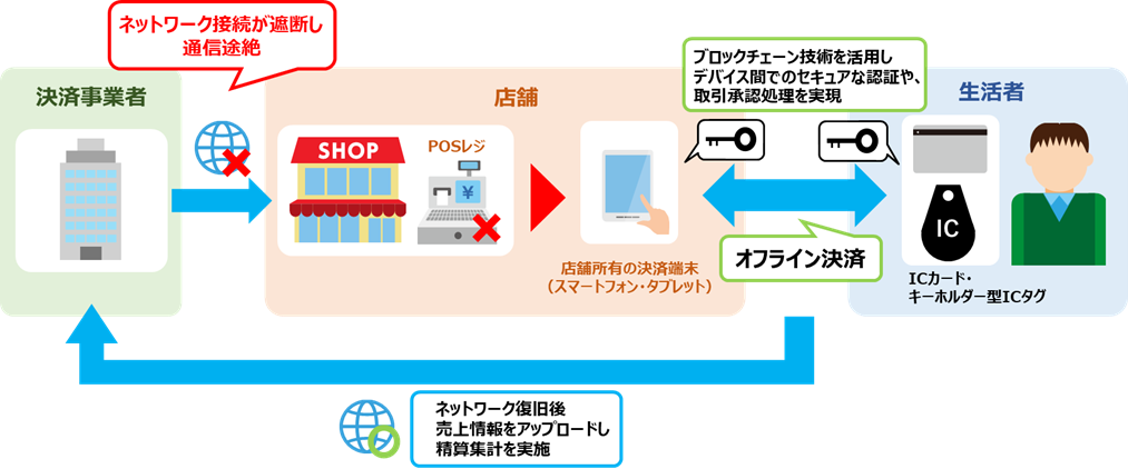 現在のキャッシュレス・ソリューションは、センターサーバーとの通信を前提としているものが大半を占めております。一方、山間部や海上など通信の途絶が発生する環境や、停電などにより通信サーバーが機能しないケースなど、キャッシュレスがご利用いただけない局面での対応が課題で、中央銀行デジタル通貨(Central Bank Digital Currency、以下 CBDC)においても、オフライン環境下での決済が必要機能の1つとして議論されております。