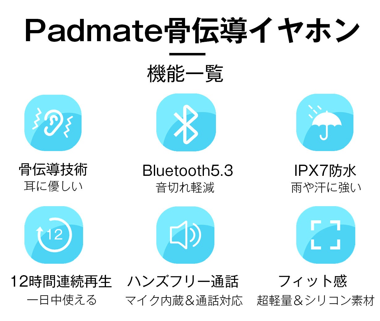 - 高質のパフォーマンスを引き出すスポーツパートナー「Padmate 骨伝導イヤホン」。