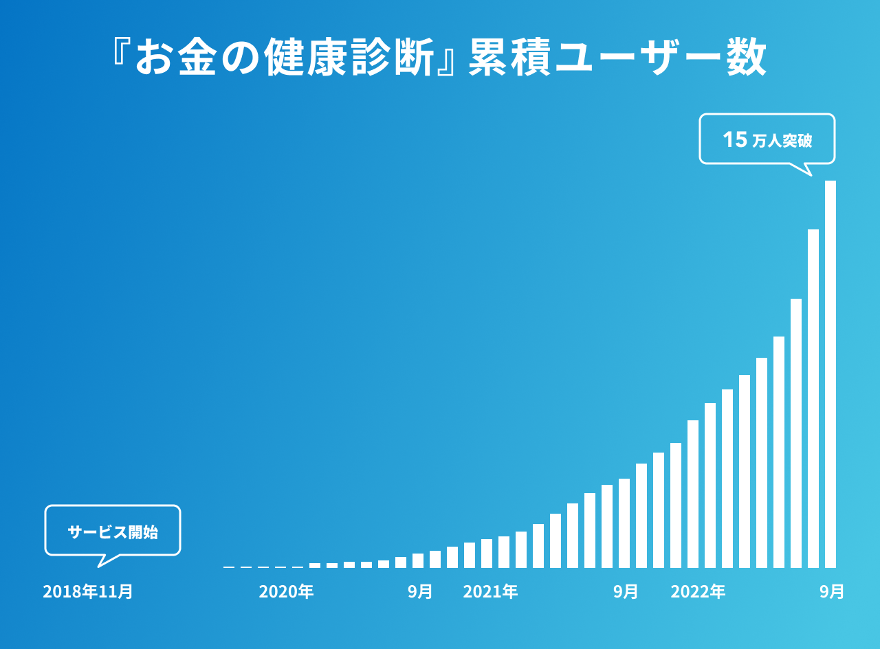 これまでサービスリリースから約4年間で、累計登録ユーザー数は約16万人となっており、直近3か月の月次新規登録ユーザー数の増加率は、平均して約40%で推移しています。(2022年9月30日時点)