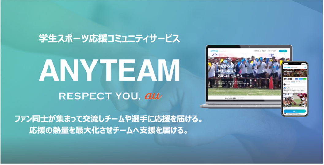 株式会社運動通信社 (本社: 東京都港区、代表取締役社長: 黒飛 功二朗、以下 運動通信社) とKDDI株式会社(本社:東京都千代田区、代表取締役社長: 髙橋 誠、以下 KDDI) は、2022年10月25日から学生スポーツ応援コミュニティサービス「ANYTEAM(エニーチーム)」の提供を開始します。「ANYTEAM」を通じて、いつでも学生スポーツを「応援」「支援」できる環境を提供することで、学生スポーツを取り巻く課題解決をサポートし、誰もがスポーツで夢を実現できる社会を目指します。