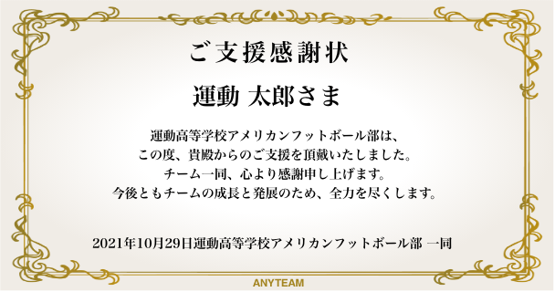 ・出身校の部活チームや、応援したい部活チームを指定して支援金を寄付することで、部活チームに対するより直接的な支援が可能です。
