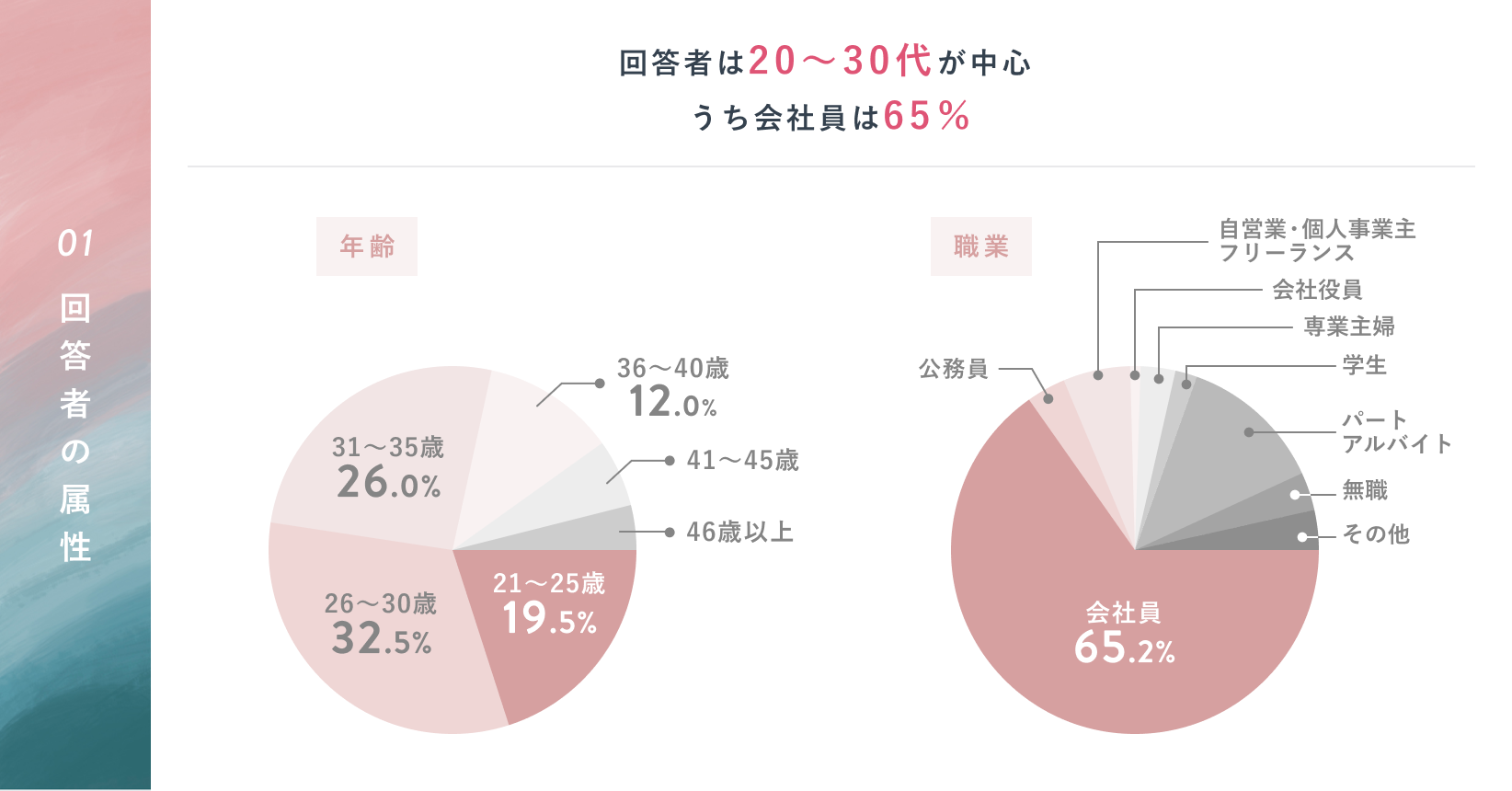 調査対象:女性 (20歳以下 0.3%, 21~25歳 19.5%, 26~30歳 32.5%,