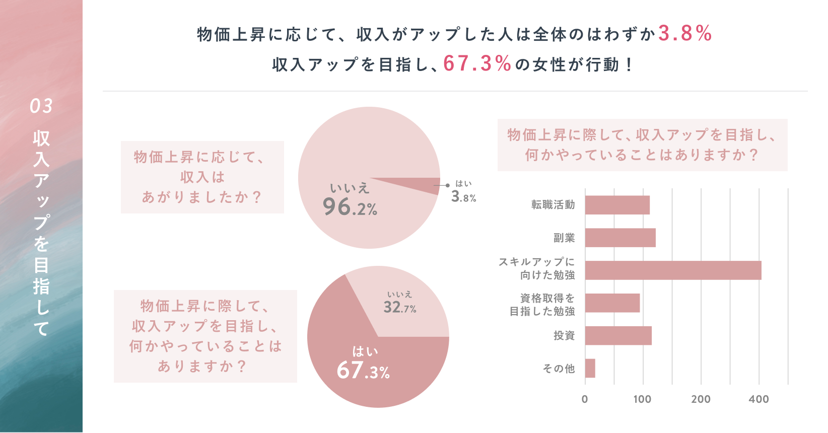■収入アップを目指し、67.3%の女性が行動!