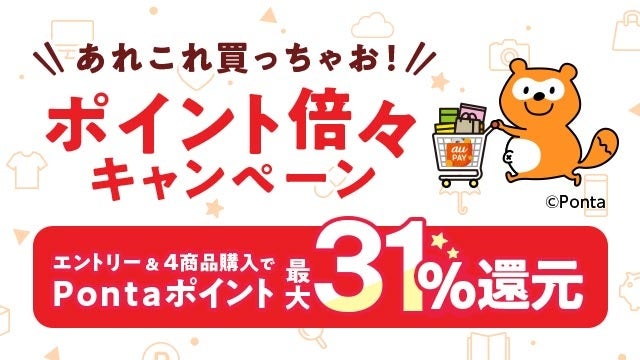 さらに、買い得メンバーズの特典と店舗からのポイント還元をあわせることで、条件に応じて最大31%のポイント還元(注)となり、おトクにお買い物いただけます。プレゼントされるPontaポイントは「お得なポイント交換所」をご活用いただくことで、最大1.5倍に増量でき、au PAY マーケットでのお買い物がさらにおトクにお楽しみいただけるようになります。