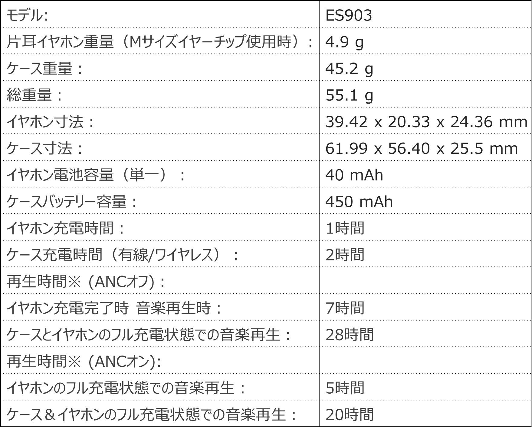 ※再生時間は、AACフォーマット、50%の音量、ノイズリダクションOFFでの測定値であり、機器の設定、環境、使用状況、その他多くの要因によって異なる場合があります。