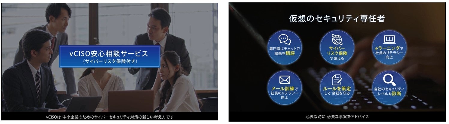 ※1 東京海上日動火災保険株式会社との連携により、vCISO安心相談サービスには同社が提供するサイバーリスク保険が全件付帯されております。