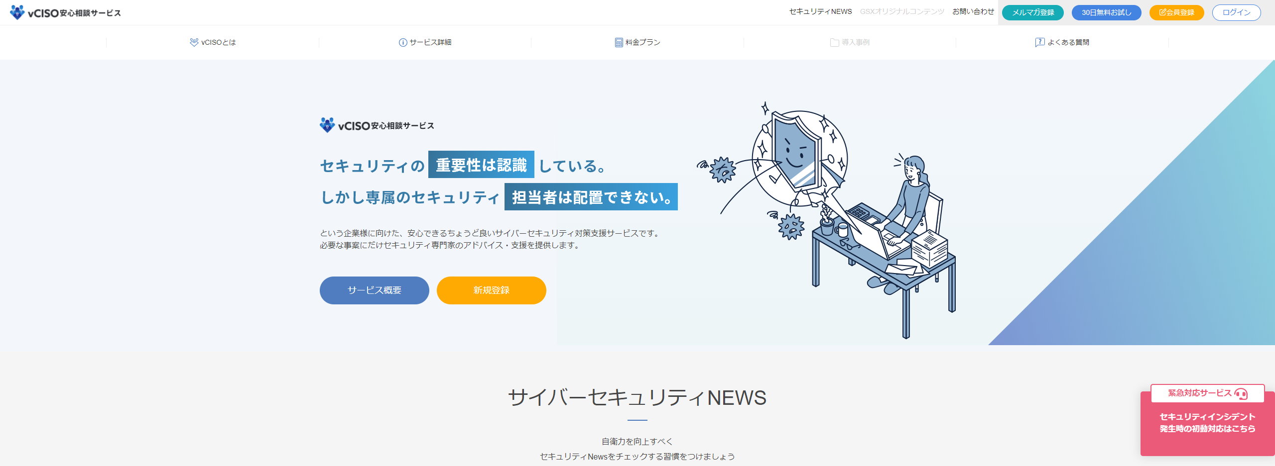 企業のサイバーセキュリティ担当者の役割を代行することをコンセプトとしています。「vCISO」とは、Virtual(仮想の)CISO(Chief Information Security Officer|最高情報セキュリティ責任者)を意味しています。