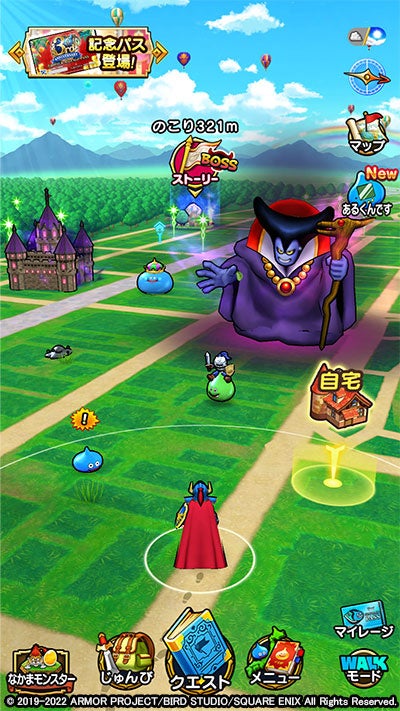 ※ 『ドラゴンクエストウォーク』は安全に遊んで頂くための機能「ウォークモード」を搭載しております。「ウォークモード」に設定することでスマートフォンの画面を操作しなくても、周囲のモンスターと自動的にオートバトルが実行されます。また、モンスターとのバトル以外にも、近づいたかいふくスポットにも自動で触れるため、HPやMPの回復も自動的に行われます。