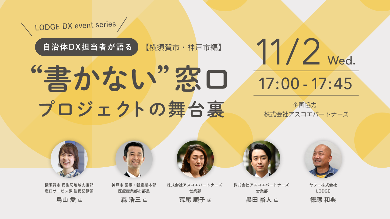各地で行政デジタル化、DXの取り組みが加速するなか、特に市民の体験向上と職員の業務効率化を両立する施策が注目を集めています。そして、さまざまな自治体で「書かない窓口」がキーフレーズとなっています。今回は、先進事例を多数お持ちの【横須賀市】【神戸市】のDXの現場担当者をお招きし、「手書きの要らない申請・窓口手続き」の推進プロジェクトの裏側についてお話いただきます。