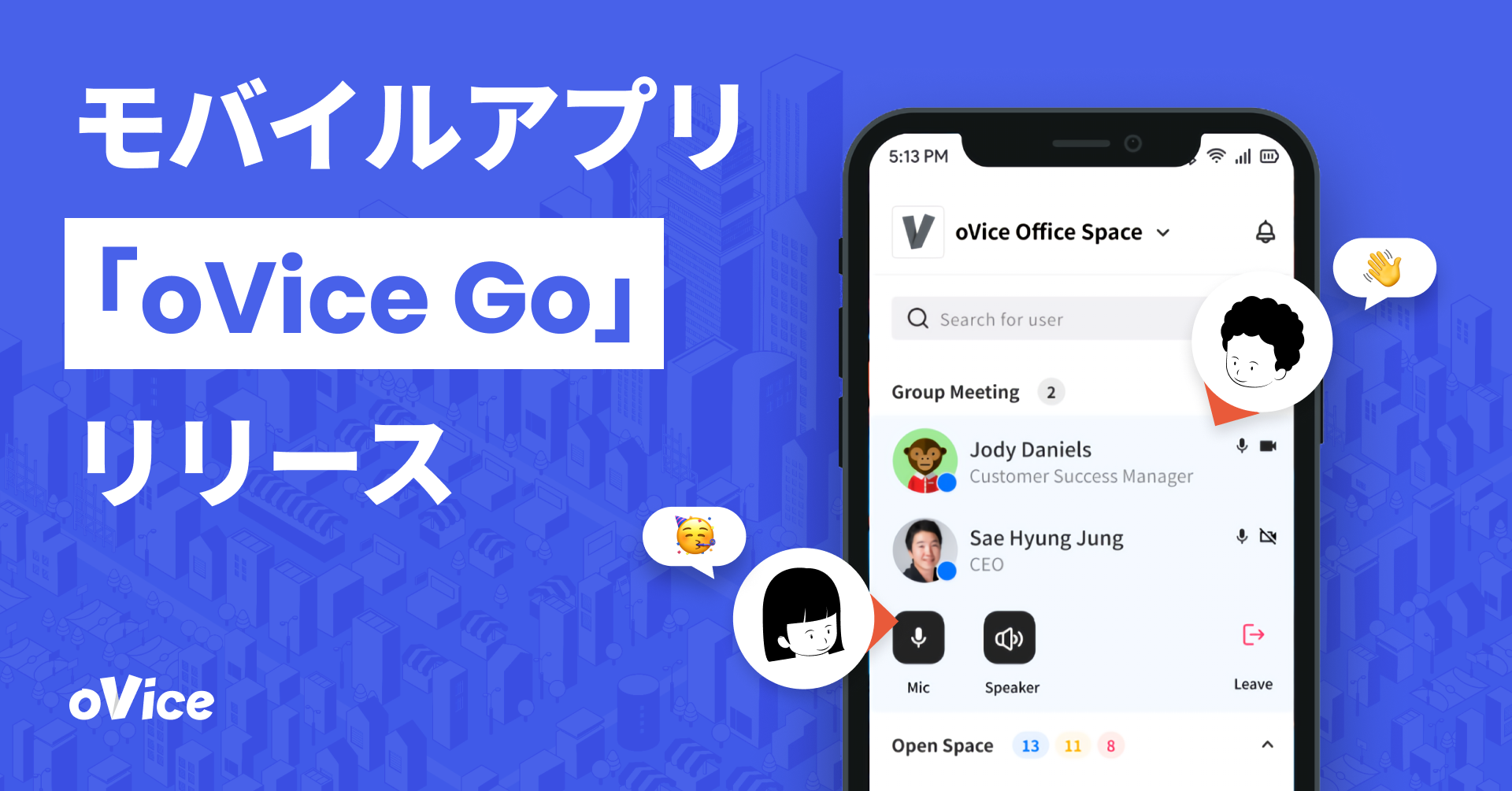 「人々の生活から物理的制約をなくす」ことをミッションに掲げ作られた、自由に動いて自由に話しかけられるバーチャル空間「oVice(オヴィス)」を開発・提供しています。2021年には週刊東洋経済の「すごいベンチャー100」に選出されました。また、oViceはシリーズBラウンドで新規投資家および既存株主含む複数投資家を引受先とする第三者割当増資に加え、複数の金融機関からの融資により総額45億円の資金調達を行ったことを2022年8月31日に発表しました。