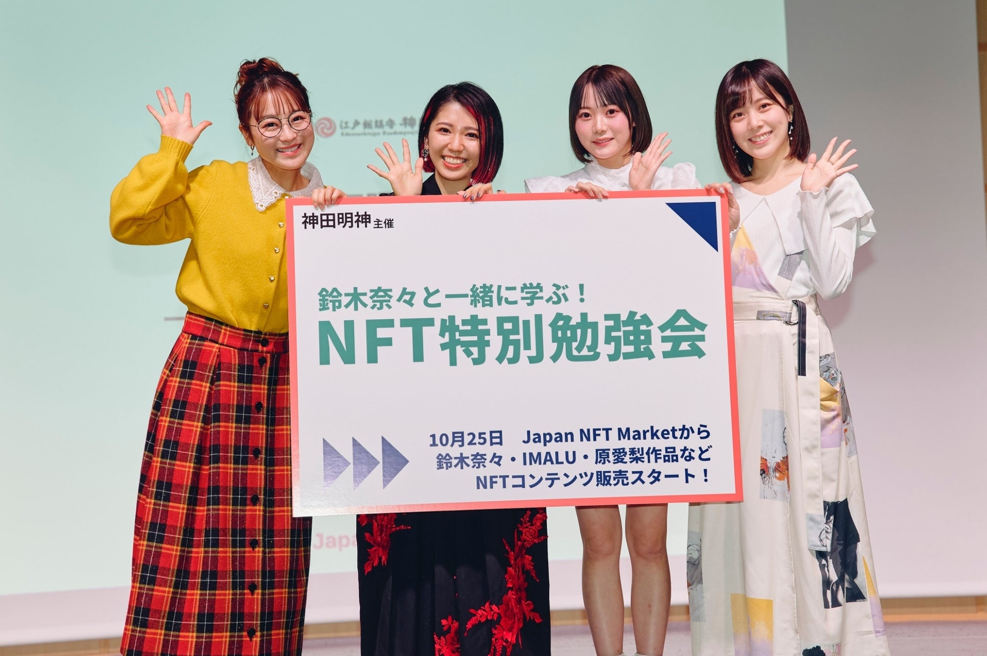 MCの紹介によって鈴木奈々・橋本桃呼・間島和奏の3名が登場すると、それぞれ本日のNFT勉強会の意気込みを次のように話しました。