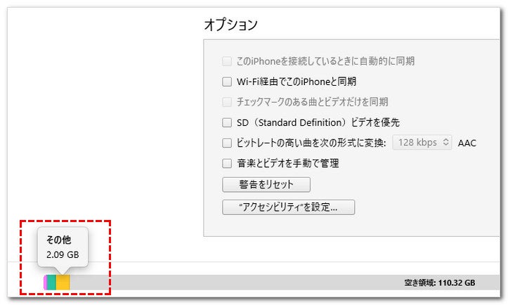 方法2.iTunesを利用してPCでシステムデータ(その他)の容量を確認する