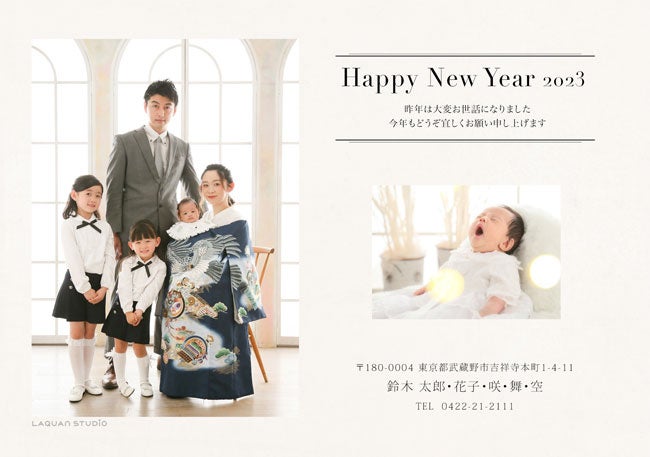 毎年デザインに悩む年賀状も、素敵な家族写真が1枚あればそれだけで様になります。早めに撮影すれば、今年の年賀状作成にも間に合います。らかんスタジオでは、11月1日(火)よりオンラインでの年賀状注文受付を開始。お世話になった方へ、最新の家族写真を入れた年賀状を送ることができます。