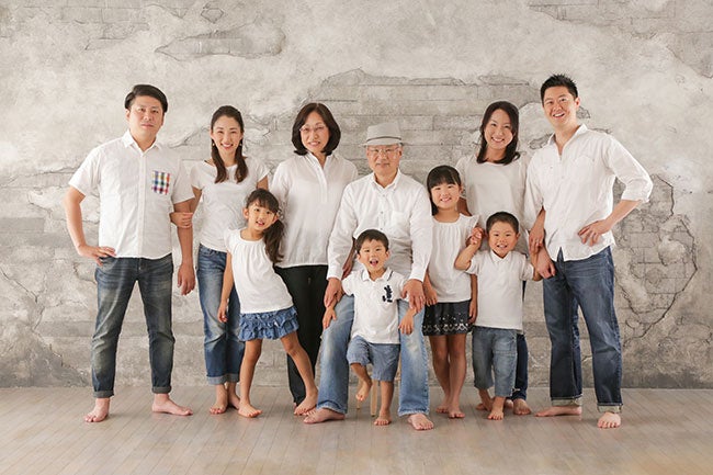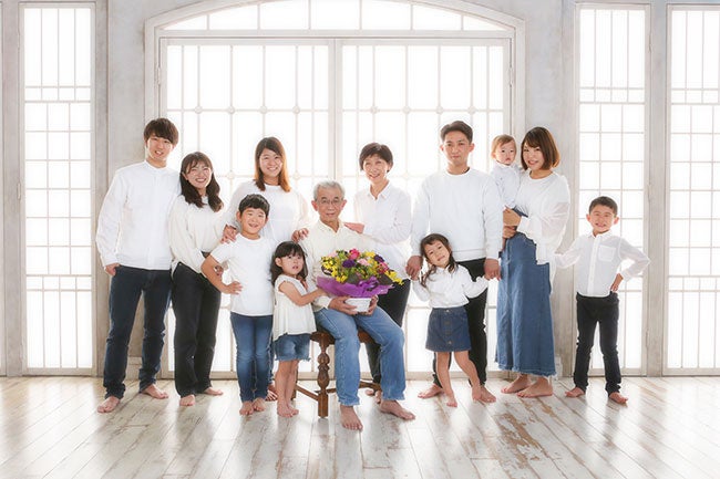 「結婚してから、毎年の結婚記念日に家族写真を撮っています。はじめは2人だけでしたが、子どもが生まれて3人になり、4人になり…。夫は『子どもが20歳になるまでだな』なんて言っていますが、孫が生まれてもずっと、結婚記念日には撮影してくつもりです!」