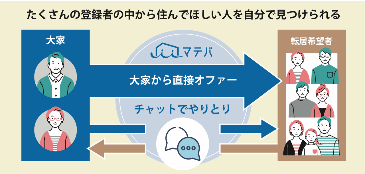 『マテバ』が提供するプラットフォームでは、大家が積極的に転居希望者にアプローチを可能にすることで業界のデジタル化、大家の収益率向上に貢献してまいります。