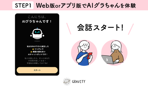 1.Web版もしくはアプリ版「AIグラちゃん」とトークする。