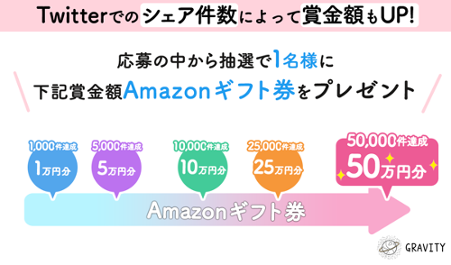 ※結果発表、Amazonギフト券の受け渡しはGRAVITYアプリ内で行います。
