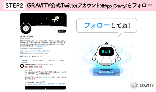 ※キャンペーンの参加には、①GRAVITY公式Twitterアカウント(@App_Gravity)のフォロー