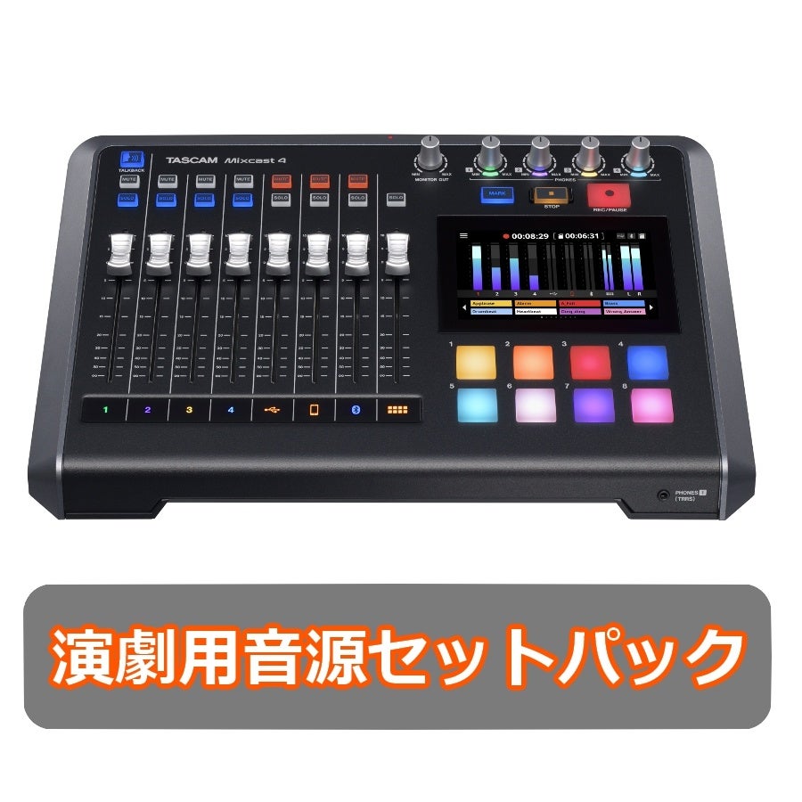 推理もの・サスペンスなどの演目に使える16種のプリセット音源をセットにした、お遊戯会や小規模な演劇の音声周りを簡単にセッティング・オペレーション可能なスペシャルセットです。