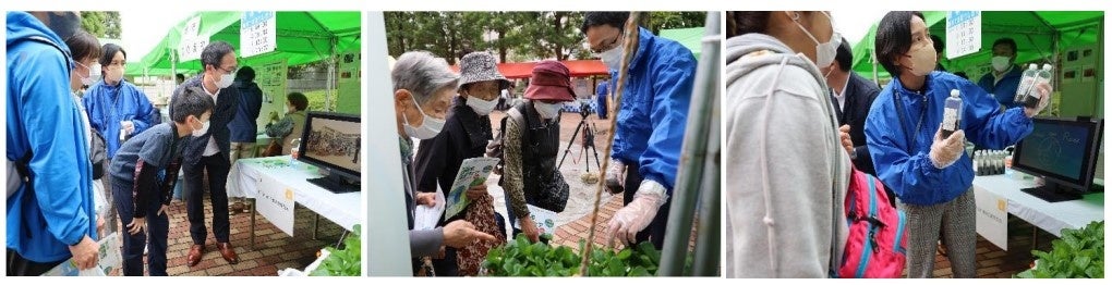 NTT東日本グループのブースでは、都市型資源循環に関する取り組みの紹介や、その中で生産された液体肥料の配布などを行いました。ブースには、子どもからご高齢の方まで大勢の方々が訪れ、スタッフの説明に熱心に耳を傾けていました。