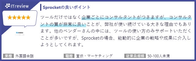 Sprocketのレビューページはこちら:https://www.itreview.jp/products/sprocket/reviews