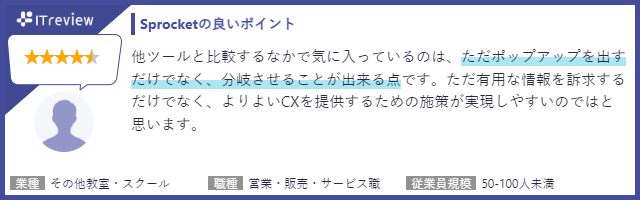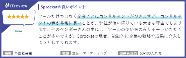 Sprocketのレビューページはこちら:https://www.itreview.jp/products/sprocket/reviews