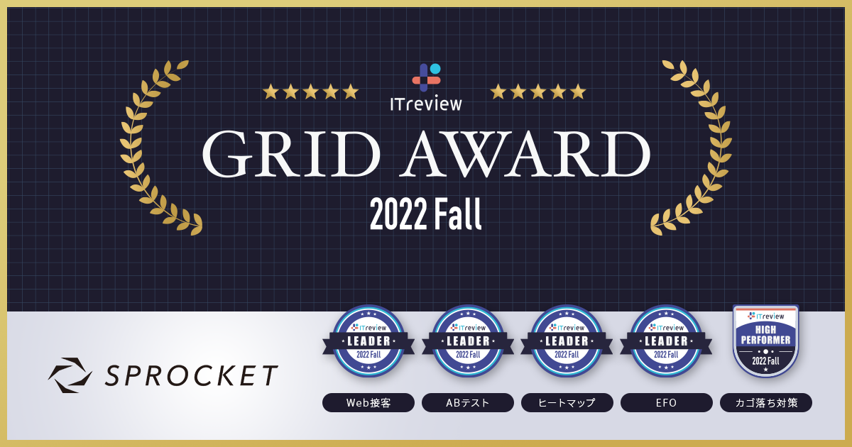 今回の受賞でSprocketは、評価対象となった4部門で特にユーザー満足度において高い評価を得ており、ABテスト、ヒートマップ部門では5期連続、Web接客においては4期連続のLeader受賞となりました。「機能面ではシナリオ分岐があるため、より丁寧なご案内ができる」「ECサイトを運営しており、商品を売る以外の観点でもお客様のLTVを上げたいという考えを持っているため、細かく接客できることが良い点だと思う」「コンサルティングの方の企画提案から設計・公開・検証・再提案までお任せしているので、接客ツールを自社サイトに取り込むことができた」などの評価をいただいております。